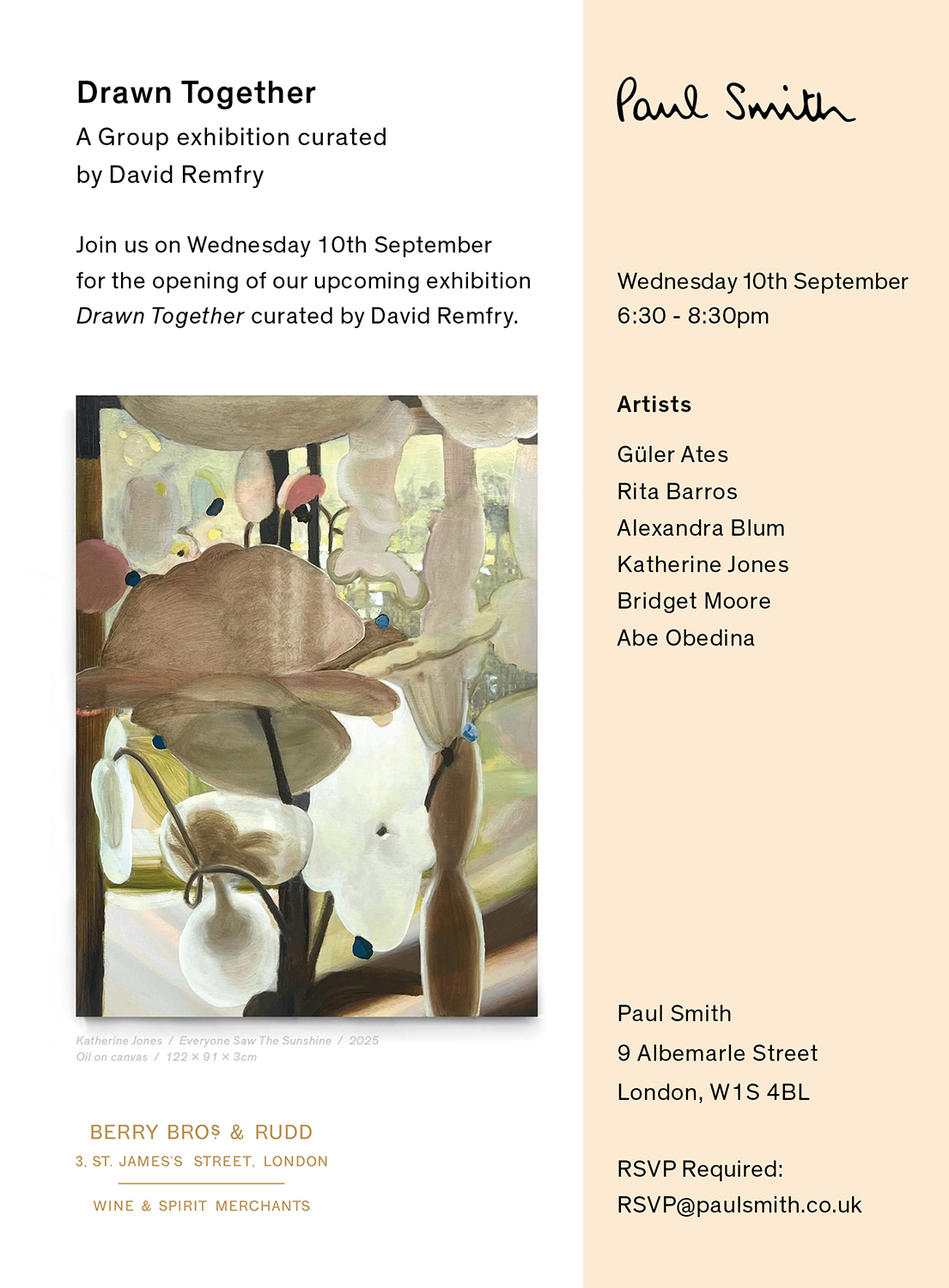 -Drawn Together, A group exhibition curated by David Remfry, Paul Smith Space, 9 Albermarle Street, London Invite September 11, 2025- November 11, 2025