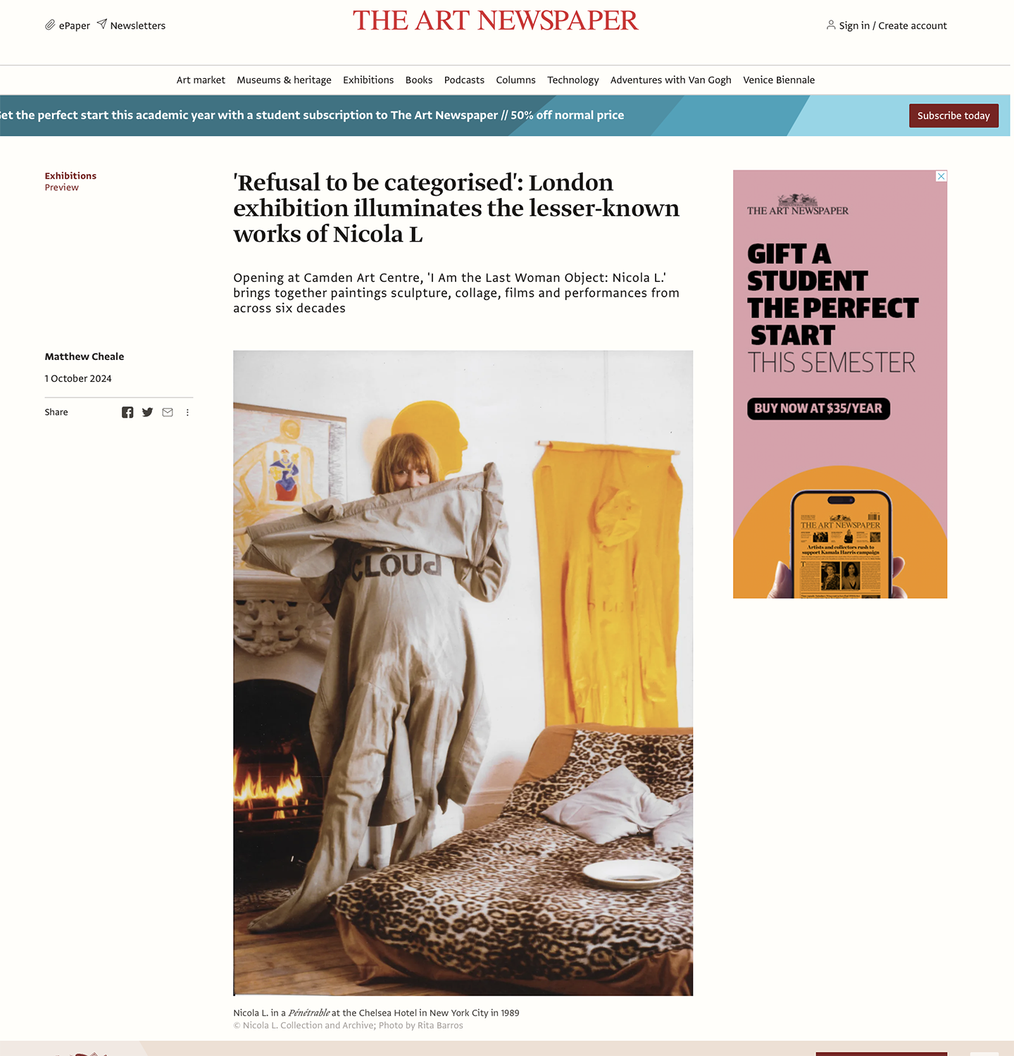 The Art Newspaper, Refusal to be categorized... Nicola L by Mathew Cheale, Oct 1, 2024 PDF